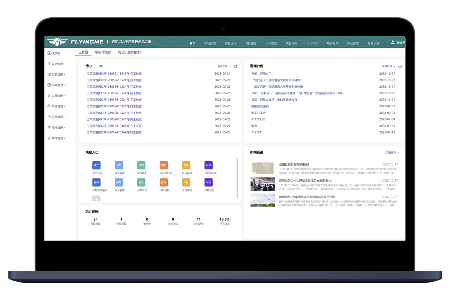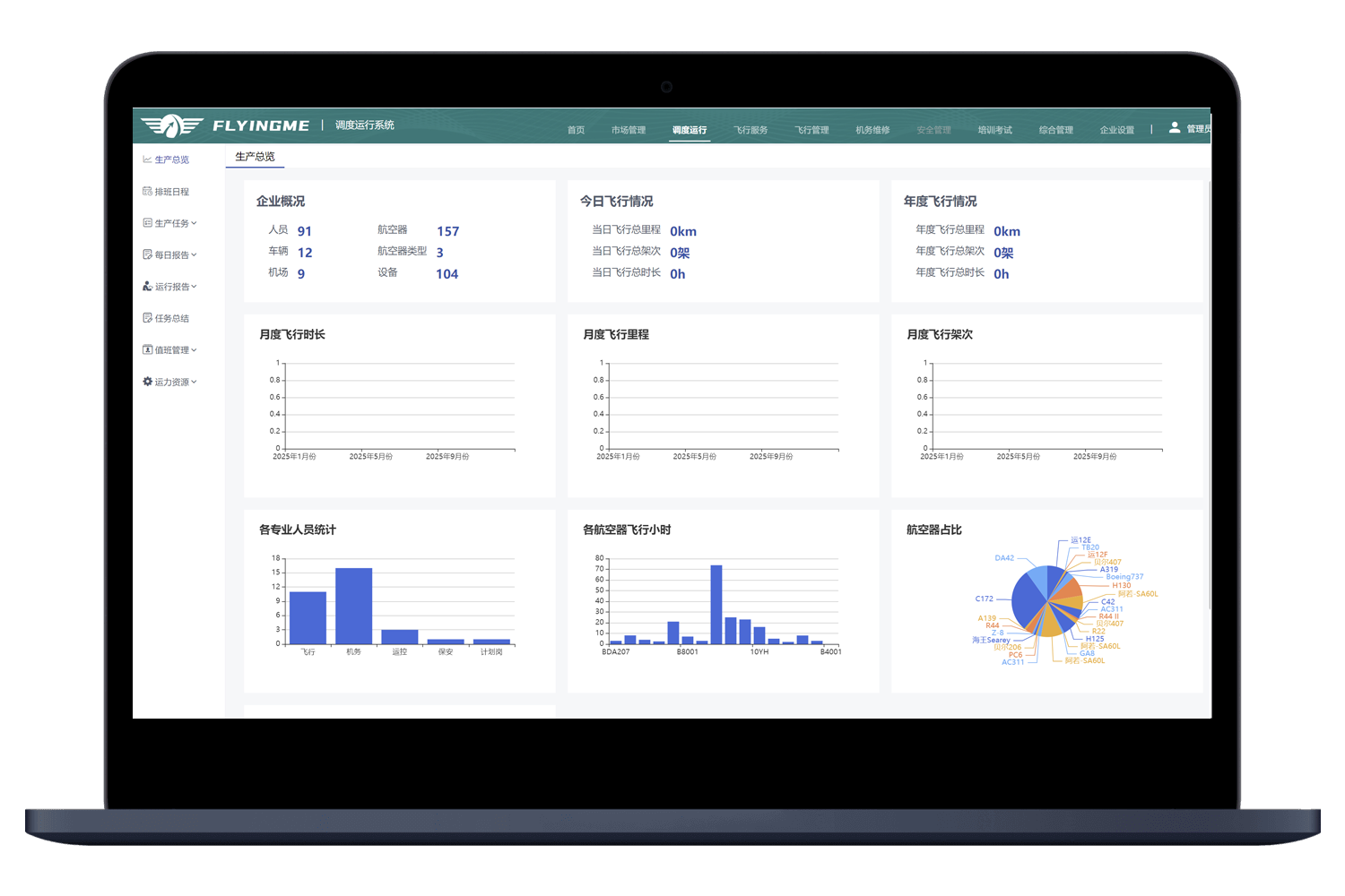通航综合生产管理信息系统旨在降低通航企业在数字信息化方面的投入成本,提高公司运行安全和运营效率,同时优化现有管理方式。通过满足通航公司各部门业务生产作业需求,包括市场管理、运行调度、飞行管理、基于ASP理论的机务维修、综合管理以及培训考试等栏目,切实为通航公司提质增效,降低运营成本。
